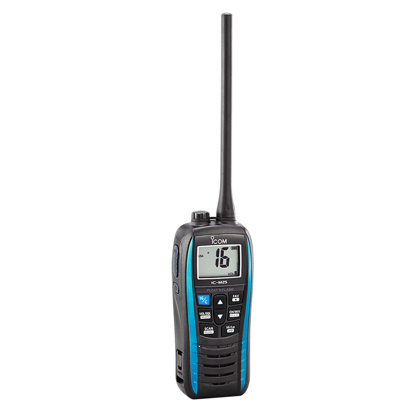 O IC-M25 é um rádio portátil VHF marítimo leve e à prova d’água, com 5 W de potência, carregamento via USB e função Float’n Flash, que permite localizar o equipamento caso caia na água. Ideal para embarcações de pequeno porte e atividades náuticas, oferece áudio potente, display amplo e autonomia de até 11 horas.